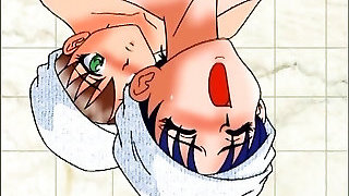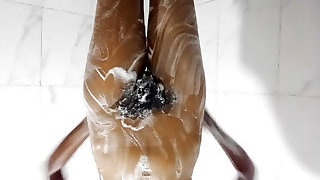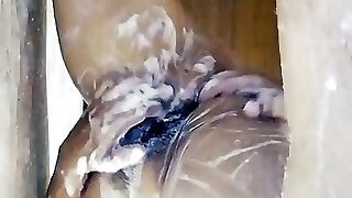 My stepbrother takes a douche and I go into the douche to scrub him and take a shower with him.