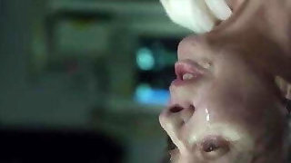 Fake Hostel - Slim ash-blonde babe tied up and fucked by Futa MILF in body stocking taking a creampie in her mouth and inside her soaking wet shaved cooter