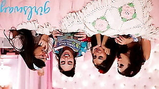 Blinded by the Anal Breezies 3 sexy brunettes take it in turns to take it up the culo during a party sex session