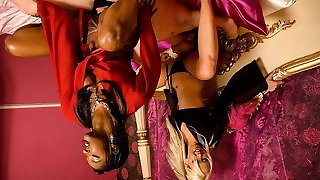 After tea time the brunette and platinum-blonde dikes take the opportunity to use their fuck stick and sixty nine
