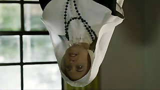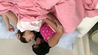 babcia kremy pasierbica & # 039;s nogi, ona przypadkowo pieści jej cipki, pasierbica podekscytowany ciągnie jej majtki