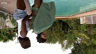 Swimming is done and the black lesbians run inwards to take out their fake penises and strapons for plowing