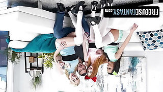 ADULT TIME - Rebellious Teen Aria Valencia Gets GANGBANGED By 5 Big-boobed MILFs! INSANE LESBIAN Orgy!