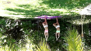 A all girl with a yummy PAWG washes her friend'_s fat pussy, and then licks her cunt, makes cunnilingus until a clitoral orgasm. Oral sex outdoors.