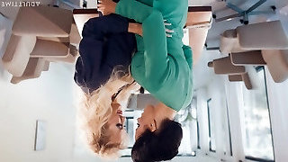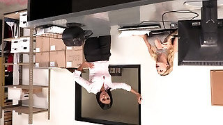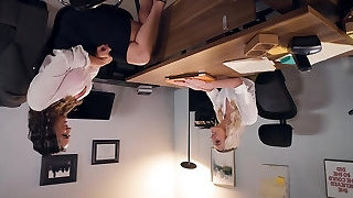 Big Tits Super-fucking-hot Blonde Boss gets caught by Big Rump Hot Brunette Assistant in Garter and Stockings in The Office