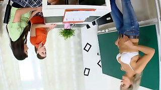 Two Nineteen Year Old Stepsisters Take Part in a Hot Lesbian Orgy with Their Lecherous Busty Teacher!